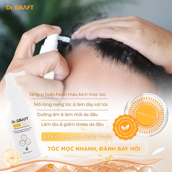 + Xịt kích mọc tóc Scalp Tonic với MCB-Formula ™ gấp 10 lần dầu gội, kích thích tóc mọc nhanh chỉ trong 2 tuần.